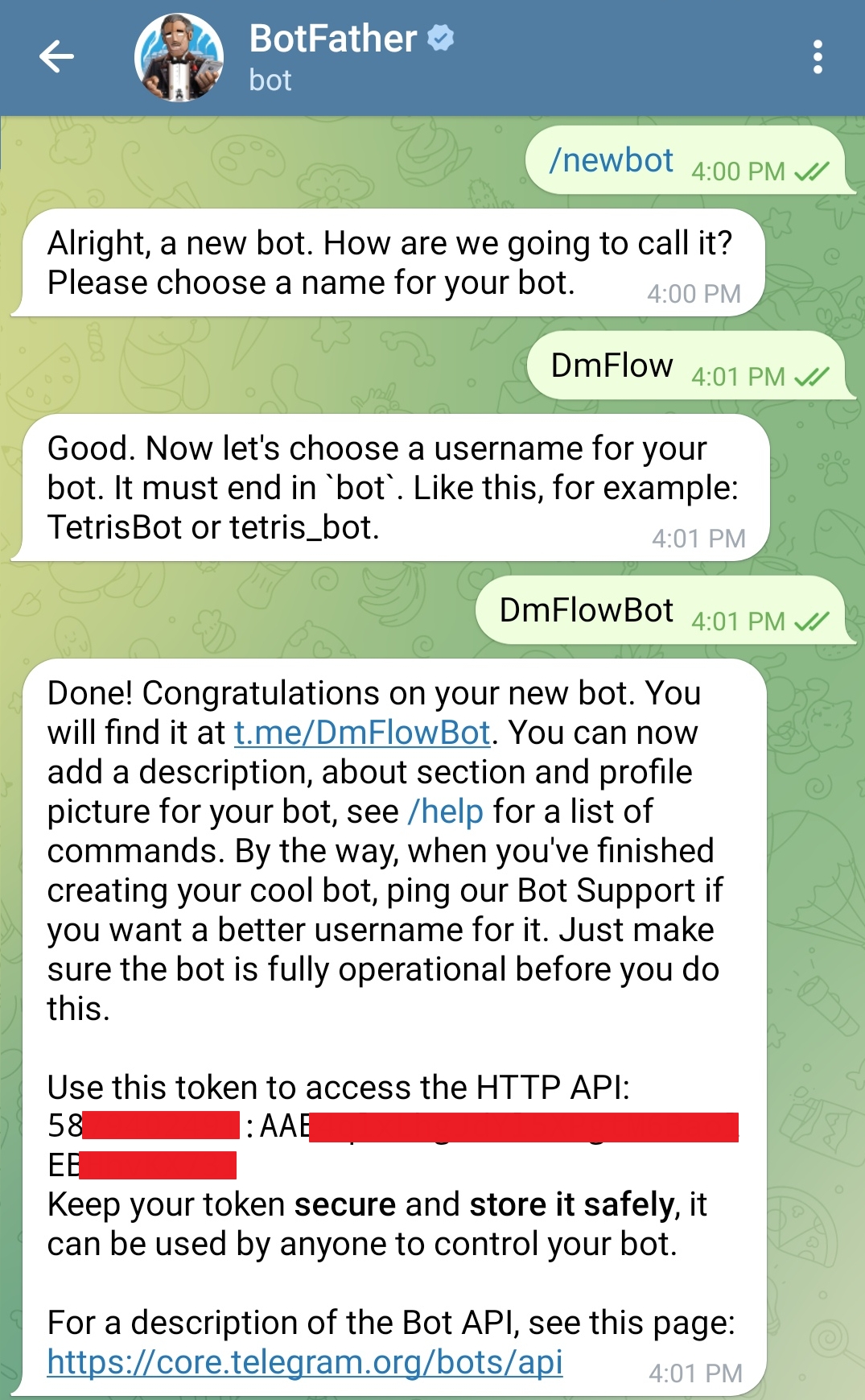 Once you have provided the required information, BotFather will generate an API token for your bot. Make sure to keep this token secure as it is used to access the Telegram Bot API.
